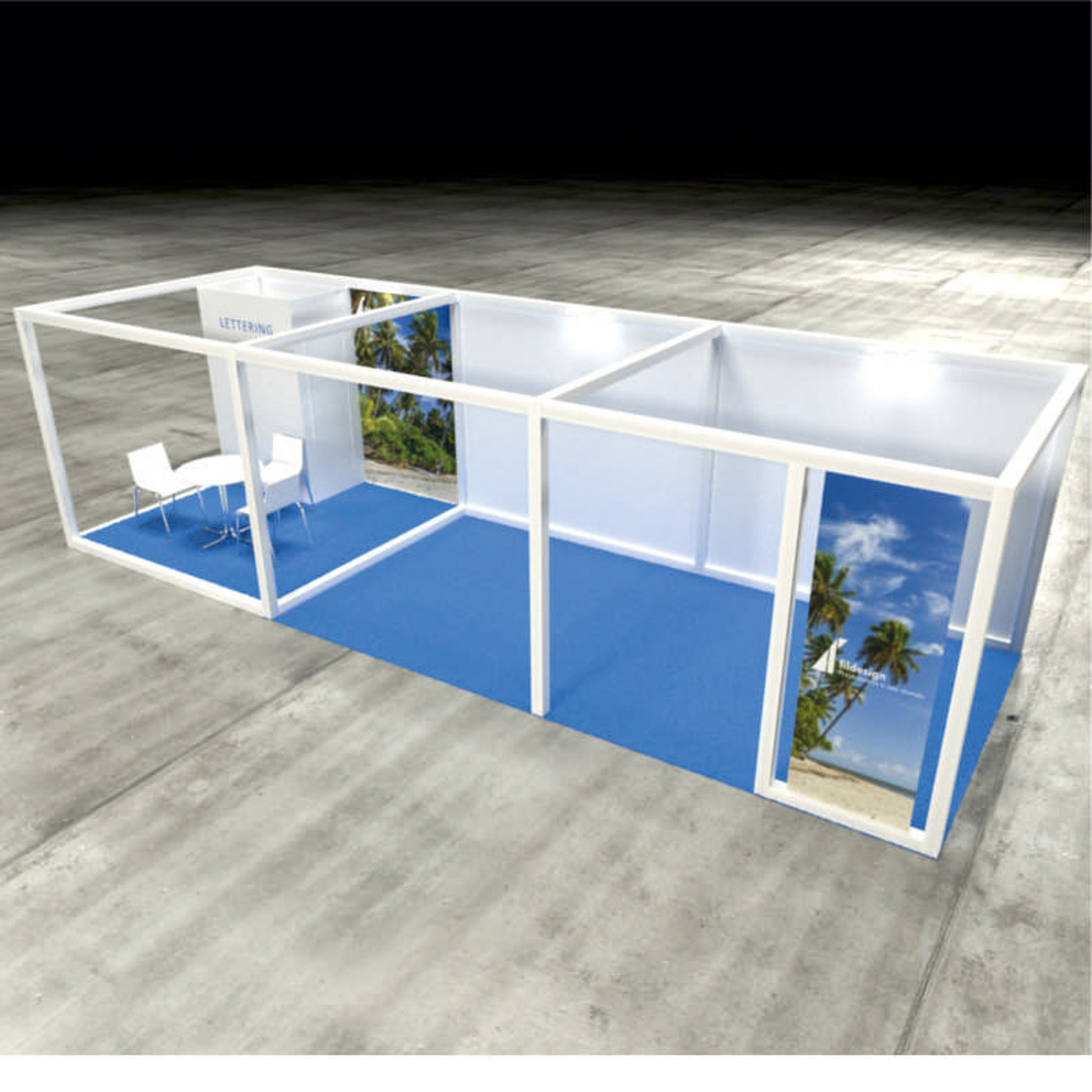 1 Impressão em tela 0,80m x 2,30m com imagem num só lado para colocação no canto exterior do stand