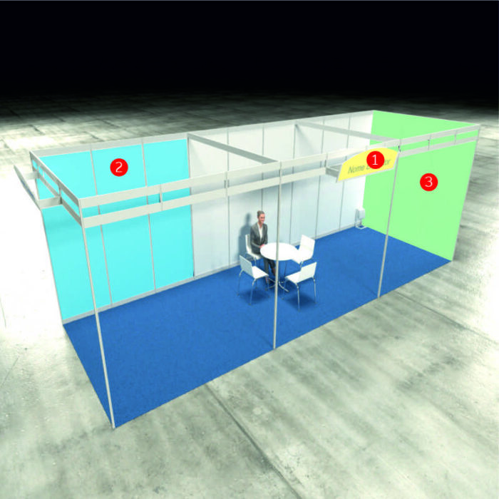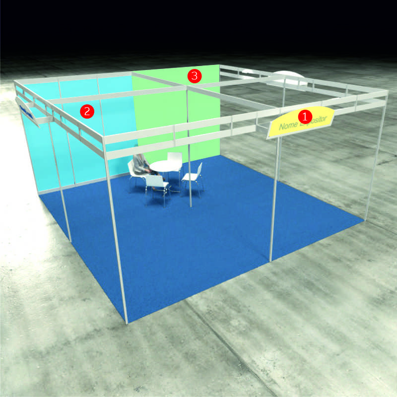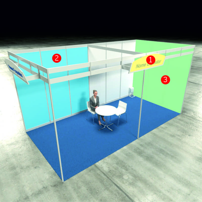 Varia consoante a implantação do stand no evento e do número de frentes.