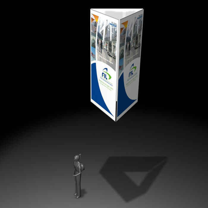O pendão ficará localizado dentro da área do stand. A suspensão é efectuada de forma manual não sendo possível garantir a localização exacta